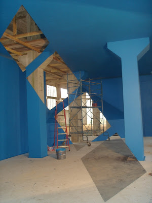 Georges Rousse en a fait son cheval de bataille : il investit des lieux abandonnés pour le transformer enespace pictural et y construire une œuvre éphémère, unique, que seule la photographie restitue. (dixit wikipédia).